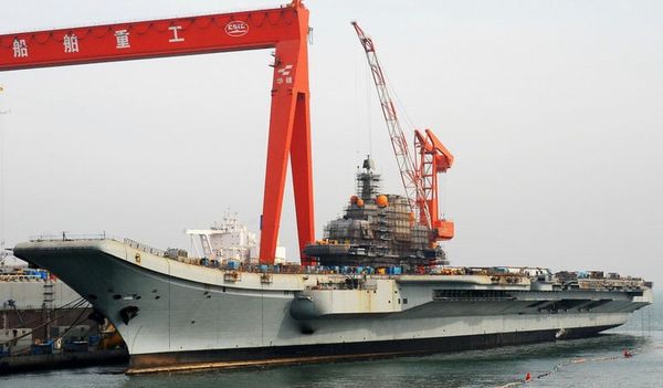 資料圖:瓦良格航母已被涂裝成標準的中國海軍淡灰色涂裝。