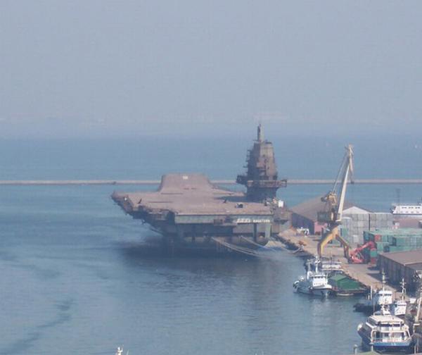 人民網資料圖:停靠在大連港的“瓦良格”號航母。