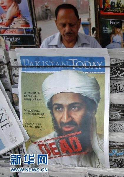 這是巴基斯坦拉合爾的一名商販售賣刊登本拉丹已死新聞的報紙。 新華社\路透社