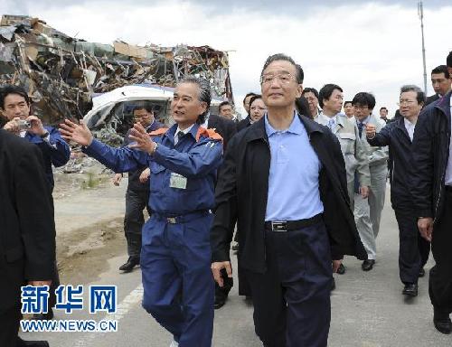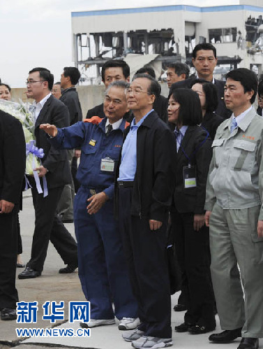 5月21日,中國國務院總理溫家寶赴日本名取特大地震海嘯災區慰問。新華社記者謝環馳攝