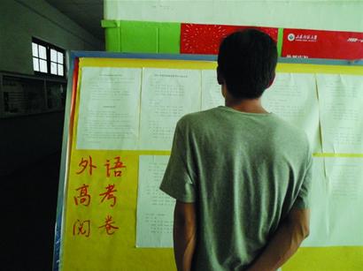 記者看到,英語閱卷一共分成了19個小組,其中16個小組是評閱作文,另外3個小組是評閱閱讀題,每個小組都有負責人。一名閱卷老師表示,下午他們經過了培訓,今天上午將開始試批試題。預計閱卷的時間持續10天左右??偟膩碚f,若一道試題出現兩個分數,則由第三人仲裁。在實際閱卷過程中,還安排了質量抽檢組,專門負責閱讀流程質量把關。