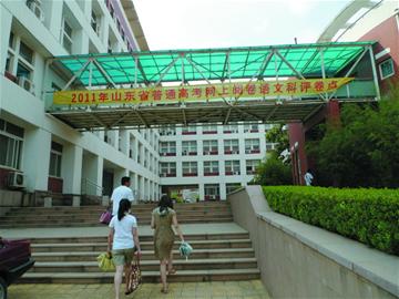 昨天下午,記者來到山東大學齊魯軟件學院,這里是高考語文閱卷現場,此處也是最早試點網上閱卷的地方。在一處教學樓前,記者看到,樓前懸掛出 “2011山東高考網上閱卷語文評卷點”的橫幅,在評卷大樓樓下,有一名保安和老師看守,記者試圖進入被攔阻,對方表示這里是高考閱卷點,沒有工作證件任何人不能進入。