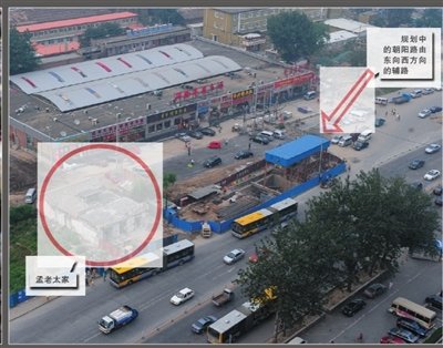 ????據(jù)了解,2005年3月初,北京市委、市政府啟動(dòng)朝陽路改擴(kuò)建工程。2007年,二期工程再度啟動(dòng)。但截至今年,被市民稱為“腸梗阻”的朝陽路依然沒能完成擴(kuò)建,而孟老太的房子就佇立在道路規(guī)劃范圍內(nèi)。因拆遷補(bǔ)償金額未能達(dá)成一致,孟老太拒絕搬家。
