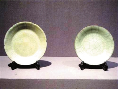 目前正在南京展出的兩只瓷盤出土于明代古墓,專家稱其為南宋“官窯”作品。 《揚子晚報》供圖
