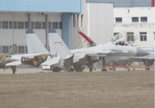 原文配圖:網友拍攝的“殲-15”艦載機。