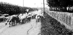 8月5日,盧龍縣蛤泊鄉的鄉村公路上,一農戶趕著羊群回家。本報記者 孟祥超 攝