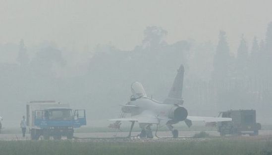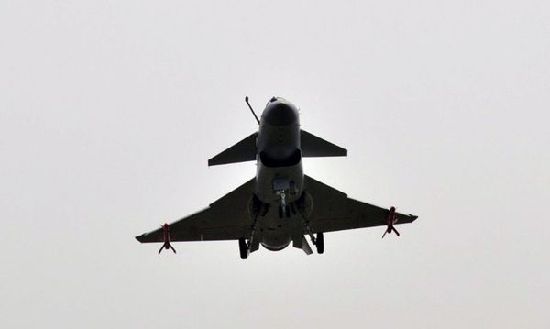 資料圖:空軍60周年飛行表演。圖為殲十起飛。攝影:劉峰