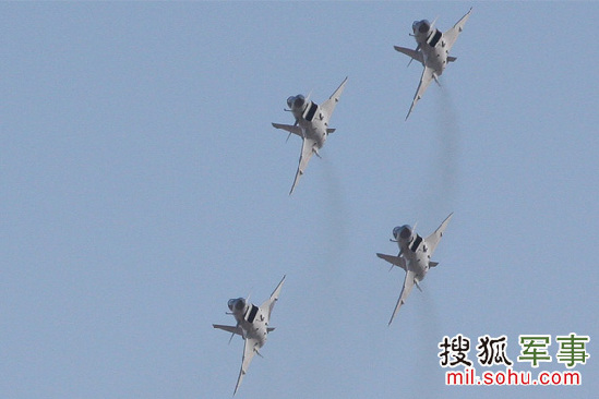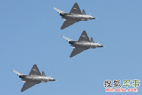 資料圖:空軍60周年飛行表演。圖為殲十多機編隊。攝影:劉峰