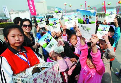 昨日,在青島日報報業集團2011讀者節現場,身穿紅馬甲的來自大學路小學的50名青島晚報小記者一出現就成為了引人矚目的焦點。他們帶著自制的廢品回收箱來到廣大讀者面前,以回收廢舊電池和塑膠袋換取晚報的形式展開了“環保大交換”活動。