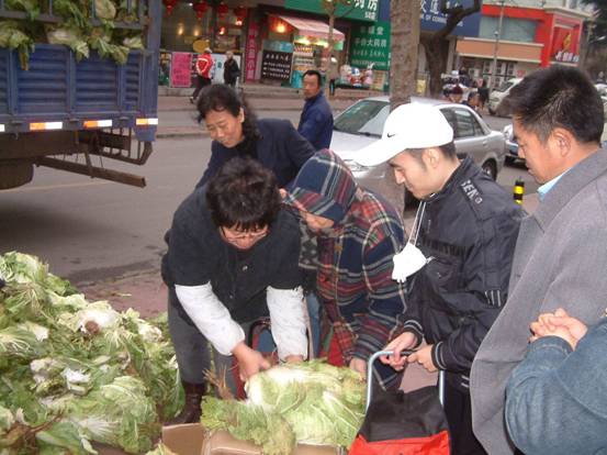 龍山商業街職工和業戶到地頭收購愛心大白菜