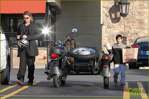 美國加州當地時間12月31日正值新舊年交替的時間,巨星布拉德·皮特也沒有閑著,而是帶著自己的8歲大的樣子外出購物。當天的布拉德·皮特身穿一身黑色,而小兒子也是酷勁十足,爺倆騎著布拉德·皮特的復古摩托車到商店進行大采購,看來是在為新年值班年貨。
