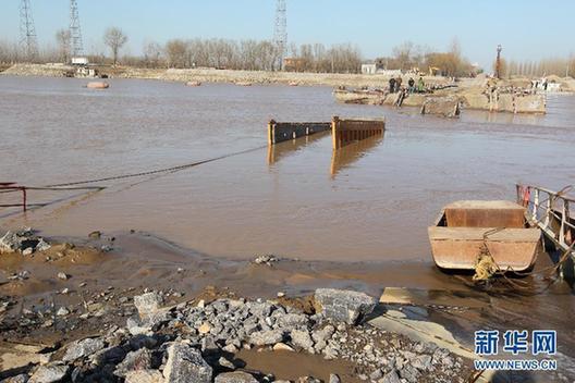 這是1月4日拍攝的濟(jì)南東郊黃河浮橋事故現(xiàn)場(chǎng)。