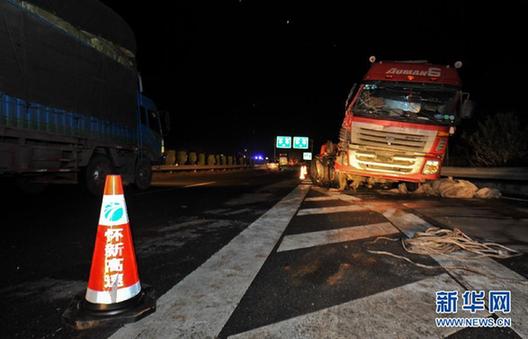 1月3日,事故發生現場尚在清理之中,車輛緩慢通行。新華社記者 白禹攝
