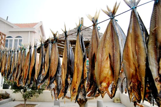 在嶗山區王哥莊街道會場鎮的小巷里,一座兩層小樓并不顯眼。與其他農家宴一樣,房子外面看起來很簡陋,院子里同樣曬著干魚。兩條家養的笨狗旁若無人地出出進進,鄉村氣息濃郁。然而通過感應電動門進到屋里,頓時感覺豁然開朗,別有洞天。木板鋪就的地面,竹藤編織的燈籠,金碧輝煌的包房,這哪里還是農家宴,分明就是五星級的會所。