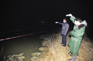 稻田變成了黑漆漆的潭水,鎮領導帶隊徹夜巡邏設防。特派記者張偲攝
