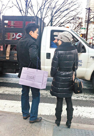 郭晶晶早前默認10月嫁霍啟剛,為避追訪,晶晶之前到香港出席活動,都刻意不住霍家大宅,寧愿住酒店,但晶晶和啟剛又怎舍得不見面?昨日有讀者向香港媒體爆料,說日前見到晶晶和啟剛在紐約市第五街出現,他們冷到手都不能拖,只是雙手插袋,但見兩人深情對望,啟剛還拿著個大紙袋,似乎剛剛與晶晶購物完,十足預支蜜月一樣甜蜜。
