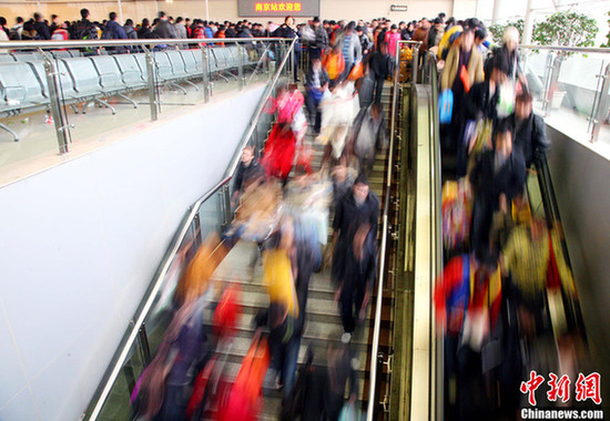 隨著前期購票的旅客進(jìn)入出行高峰階段,加上臘月二十三“小年”到來,全國迎來春運(yùn)第一個(gè)小高峰。圖為1月15日,南京火車站迎來節(jié)前春運(yùn)客流高峰。客流高峰主要以學(xué)生流、外來務(wù)工人員返鄉(xiāng)流為主。中新社發(fā)鐘山 攝