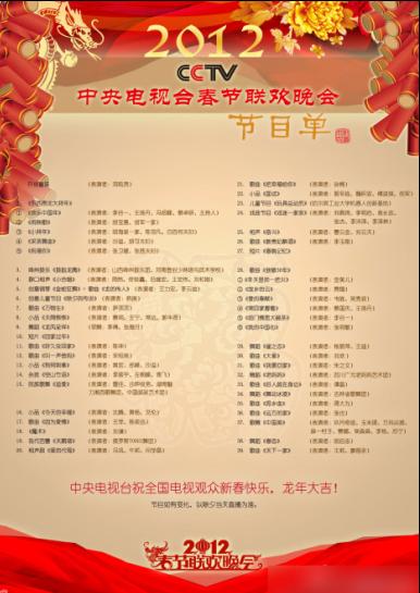 ????央視春晚每年都會在正式直播前進行全程備錄,以確保萬無一失。昨天的備錄中,王菲和陳奕迅首次亮相,攜手獻唱了廣受歡迎的歌曲《因為愛情》。同時,春晚劇組于昨天下午通過媒體發(fā)布了龍年春晚節(jié)目單,節(jié)目單上既有龍年春晚的標識,也有所有亮相春晚表演的節(jié)目和演員,觀眾可通過網(wǎng)絡進行下載。