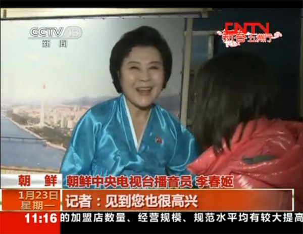 主持人:接下來我們要見到的仍然是一位老相識,同時她還是我的一位同行。在朝鮮的新聞當中,她的面孔出現的不少,而且讓人印象非常深刻。