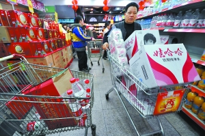 1月25日,人們在廣西柳州一超市內搶購瓶裝飲用水。(新華社 發)