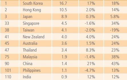亞太國家或地區在2011年度的網速與增幅排名 ????據Record Japan新聞網2月1日消息,根據全球最大的CDN服務商美國Akamai公司1月31日公布的最新數據顯示,2011年第四季度世界平均網速同比提升了39%,達2.7Mbps,平均連接速度最快的國家或地區是韓國,日本排在第三位。而中國大陸僅排在第90名。 ????數據顯示,2011年第四季度韓國平均網速同比增加18%,達16.7 Mbps,中國香港以10.5 Mbps(同增14%)位居第二;日本則以8.9 Mbps(同增5.8%)排在第三位;美國同比增幅達到了23%,以6.1 Mbps位列第13名。中國大陸以1.4Mbps的網速排在第90名,不過其網速同比增幅達到了43%。 ????此外,2011年度全球網速峰值最高的國家或地區仍為韓國,達46.8 Mbps,其次分別是中國香港46.0 Mbps、羅馬尼亞34.5 Mbps以及日本32.9 Mbps。而在“網速低于256Kbps的慢速互聯網用戶比例”的比較中,印度以29%高居亞太地區第一名。中國大陸與新西蘭并列第二,但這兩個地區的慢速互聯網用戶比例僅為3.3%。 |