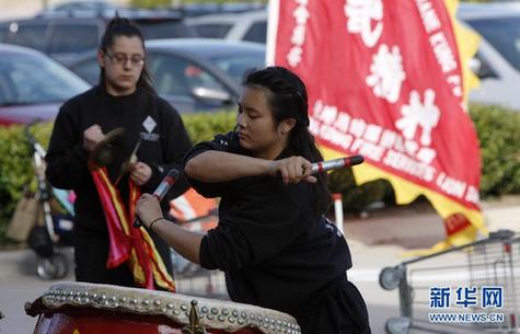 當日,達拉斯華僑組織的醒獅團向當地僑民和美國民眾呈現了一場具有濃郁中國特色的舞龍舞獅表演,慶祝即將到來的元宵佳節。新華社發(宋穹攝)