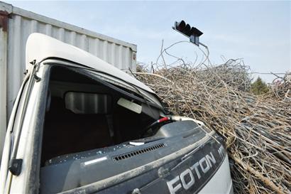 ![]() ????駕駛著小型貨車在新源路路口等信號燈時,一輛裝滿廢舊鋼筋的半掛車從旁邊車道經過,就在半掛車車頭駛過去不久,貨車司機王飛(化名)眼睜睜地看著半掛車上的鋼筋傾斜了過來,王飛見情況不妙,連滾帶爬地從副駕駛一側車門鉆出了車外,就在他出來的瞬間,小貨車的車頭就被鋼筋壓扁。 ????鋼筋散落壓扁車頭 ????“在新源路與濱海大道路口,有一輛小貨車的車頭被一輛半掛車掉下的鋼筋給壓扁了,也不知道司機有沒有事。”前日上午,市民李先生撥打早報熱線82888000報料。記者聞訊趕到現場看到,一輛白色的小貨車車頭向東停在新源路上,而在它旁邊車道上停著一輛裝滿鋼筋的半掛車,半掛車尾部的鋼筋從車斗里散落出來壓在小貨車的駕駛室上,駕駛員一側的車頭被壓扁。 ????貨車司機死里逃生 ????記者在現場找到了小貨車司機王飛。王飛告訴記者,當時他拉著貨物沿新源路行駛,來到這個路口停下等信號燈,就在這時,一輛裝滿廢舊鋼筋的半掛車從濱海大道左拐駛上新源路,在與他的小貨車擦肩而過的時候,半掛車產生了傾斜,車尾的貨物一股腦壓在他的車身上?!爱敃r我就聽到頭頂傳了車身變形的聲音,嚇得我趕緊從副駕駛那邊逃生?!蓖躏w告訴記者,他連滾帶爬地逃出了駕駛室,剛從車里出來,駕駛室那邊的車頭就被壓扁了?!靶姨澪颐螅皇俏遗艿脡K,就被困在這里面了?!蓖躏w回憶剛才的驚險瞬間仍然是一身冷汗。 半掛車涉嫌超載 記者在現場看到,就在濱海大道和新源路路口立著一個交通指示牌,上面寫著大車在白天禁止從此處通行,而這輛半掛車是違法駛入。另外,記者注意到,這輛半掛車拉了滿滿一車鋼筋,而且這些鋼筋在車上堆積得有3米多高?!把b了這么多貨物也不知道有沒有超載,你看看,每一段鋼筋就用一根鋼絲繩拉著,沒傷著人真是萬幸了?!眹^市民表示,他們在現場并沒有看到半掛車司機。 (記者 徐棟 于滈 實習生 趙瓊潔攝影報道) |