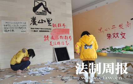 麓山里佳園售樓部被砸得滿地狼藉,沙盤模型已經(jīng)被毀,地上散滿各類文件。本報(bào)記者 雷鴻濤 攝