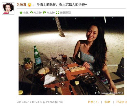 日前,被臺灣媒體讀者拍到吳辰君同其男友現身機場。而2月14日,吳辰君在網上曝光馬來西亞小島過浪漫情人節的畫面,更使得這段戀情正式浮出水面。該媒體稱這名叫Aaron廖的吳辰君男友,現任鳳凰衛視高層。