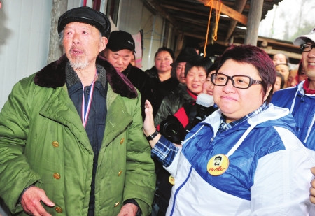 韓紅(右)在都江堰看望抗戰(zhàn)老兵甘君迪 昨日中午,歌手韓紅低調(diào)出現(xiàn)在成都市過街樓某賓館。隨后,一行人在成都志愿者幫助下,趕往郫縣、都江堰看望老兵。 去年,《新周刊》社長孫冕在微博上發(fā)起關(guān)愛老兵行動,得到眾多知名人士的支持和關(guān)注。韓紅此次專程來蓉,計劃用3天時間,探訪援助成都、郫縣、都江堰、金堂和眉山等地的19位老兵。 昨日中午1點左右,幾名韓紅的粉絲得到消息,守候在賓館大門外。沒過多久,韓紅和十余名統(tǒng)一穿著藍(lán)白色上衣的志愿者走進(jìn)賓館,與孫冕和成都的志愿者會合后,一行人驅(qū)車趕到郫縣的敬老院,84歲的老兵官煥就住在這里。 “我也是當(dāng)兵的。”見到老人,身為空政文工團副團長的韓紅馬上“套近乎”,老兵官煥立刻回以軍禮。雖然年事已高,身體虛弱,終日臥床的他,知道有人來探望,堅持靠墻而坐。 韓紅這次不但給老兵發(fā)了“紅包”,還專程帶來醫(yī)生,為老兵進(jìn)行了身體檢查。官煥1943年參軍,老伴在“5·12”地震時腿部受傷,兒女不常在身邊,目前獨自住在敬老院。在反復(fù)交代護(hù)工如何照顧老人后,韓紅和孫冕又趕往都江堰探望93歲的老兵甘君迪。 甘君迪畢業(yè)于黃埔軍校,聽韓紅介紹自己是空軍后,他馬上說:“我守過新津機場。”此后,老人跟韓紅和志愿者們聊起了打仗的經(jīng)歷。 “我很高興!”看到這么多人來看望自己,甘君迪一直重復(fù)著這句話。隨后醫(yī)生為其做了簡單體檢,發(fā)現(xiàn)他心臟有些問題,囑咐老人的子女一定要帶父親去醫(yī)院看病,并留下3000余元慰問金。 今天和明天,韓紅、孫冕和志愿者將探訪在金堂和眉山的老兵。 |
