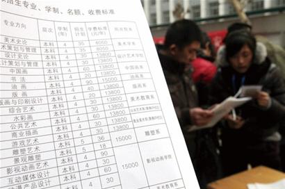每年春節(jié)前后,我們總會看到這樣一群人,他們或背畫夾,或提行李奔走在各個藝術(shù)院校之間,也許是為了自己的理想,也許只是為了能更便捷地走過高考,無論是哪一種想法,藝考路對于他們都很艱難,卻擋不住他們的腳步,看著這些忙綠的身影,我們能夠想到的不只是感動。 當(dāng)數(shù)萬張青春的臉在同一個時段聚集在一個校園,競爭若干上升通道之時,那情形讓記者看得有些揪心。找尋出路是一件重要的事,也是一件艱難的事,雖艱難卻須全力以赴。高額的花費、考試“車輪戰(zhàn)”、迷茫的就業(yè)路……面對當(dāng)下的藝考之路,孩子和家長們注定躲不過這些溝溝坎坎。 15萬砸出一個美術(shù)生 目前,多數(shù)院校的藝考進入“收官”階段。從各院校透露的信息看,今年藝考依舊“高燒”,競爭可用“慘烈”來形容。據(jù)山東省教育招生考試中心統(tǒng)計,2012年山東省共有89594人報考藝術(shù)類專業(yè),共有426所省內(nèi)外院校在我省的濟南、青島、濰坊、淄博四個城市設(shè)置考點組織藝考招生考試。面對“車輪戰(zhàn)”,做家長的一邊心疼孩子,一邊大把大把花掉鈔票,這也讓他們感覺肉疼。 2月2日晚上,記者在濟南到青島的火車上遇見威海榮成藝考生周日文,他剛參加完山東工藝美術(shù)學(xué)院的考試,準(zhǔn)備到濰坊考下一場?!斑@半年僅僅上考前輔導(dǎo)班就花了3萬多元,好在家里條件稍微好一些,爸媽還能掏起這份錢。”周日文告訴記者,半年前他就從家里出來了,在濰坊一個考前輔導(dǎo)班學(xué)了3個月,學(xué)費花了1.2萬元。最近兩個月,他又在濟南上了一個考前沖刺輔導(dǎo)班,花了2萬元的學(xué)費。再加上吃飯住宿考試的費用,他粗略算了一下,從學(xué)美術(shù)開始到這撥考試完,他總共花費在15萬元左右?!?5萬是個普遍認同的花費基本線,這只能算個中等水平,花得比我多的人還有很多。”周日文說。 一月考試扔進2萬元 “每場考試的報名費平均在200元,我計劃考16個學(xué)校,有幾個學(xué)校可能得考不同的兩個專業(yè),報兩次名,報名費總共近4000元。”劉菊給記者算了一筆賬,每次外出考試的交通、住宿、吃飯,還有買畫筆、顏料的費用,每一筆都是不菲的數(shù)目,特別是她還有父親全程陪著,除考試報名費外,兩人一路的生活花銷是大頭。加上后期她還要去上海、大連,一個月的考試花費得有2萬元左右。 “僅這次來考山東工藝美術(shù)學(xué)院一場的花費就1000多元?!眲テ揭菜懔艘幌?,報名費200元,住宿182元,來回的火車票488元,在濟南吃了4頓飯大約200元,打出租車約150元?!跋啾葋碚f,這些花費還都是小錢?!崩顒P的爸爸說,他朋友的孩子學(xué)鋼琴,僅買一架鋼琴就花了30萬元,請家教老師等更是花錢如流水。 跟美術(shù)類考生比,音樂、模特類的考生在這半個多月的趕考中花費更多?!俺藞竺M、路費、住宿外,每場考試前的化妝也要掏一大筆?!痹诎舜箨P(guān)小禮堂報名參加模特考試的周曉慧告訴記者,模特考試基本都需要走秀,為了能給考官留下好印象,考前要化妝,有些還要專門找化妝師做盤頭造型,每次就得幾百元。另外,模特類專業(yè)考點設(shè)置得比較少,這就需要在全國各地奔走,有時候不得不坐飛機趕考。 日常花費像“小刀割肉” 記者詢問劉菊等人學(xué)美術(shù)以來總共花費多少錢時,幾名父親都顯得很迷茫?!熬唧w還真沒算過,一些花費是孩子他媽管的,但估計她也沒數(shù)。日常的花費就像小刀割肉,很難算清楚?!眲テ秸f,從孩子開始學(xué)美術(shù),只記得鉛筆每次都是買好幾捆,顏料每次都是幾百元的。除了在學(xué)校的正常費用外,幾乎所有的節(jié)假日孩子都要去上輔導(dǎo)班,每天80元至100元左右。 也有一些家庭條件相對差一點的考生花費并不多。“鉛筆、顏料、紙張等工具需要花錢,但省著用也花不了多少錢,每月兩三百元就夠了?!眮碜耘R沂的考生劉鵬說,他平時上課,畫紙的正面畫素描,背面畫水粉,這樣能省下不少畫紙錢。最主要的是,他沒有上考前輔導(dǎo)班,更多的時間是自己在家對著輔導(dǎo)書臨摹。另外,這次出來考試也是經(jīng)過反復(fù)研究,選擇了7所學(xué)校,大多在濟南考點考試,這樣也省下很多奔波的費用,算起來這半個月考試他有4000元足夠了。 “花費多的主要原因是很多考生不夠自信?!鄙綎|工藝美院考點一名負責(zé)招生的老師說,其實考前輔導(dǎo)班上的也就是個氛圍,如果考生足夠勤奮,完全可以彌補上考前輔導(dǎo)班的缺憾。另外,如果水平夠高,在選擇報考學(xué)校的時候,也不用采用“廣撒網(wǎng)”的形式,只考自己理想的3至5個學(xué)校就足夠了,因為最后高考完填報志愿的時候,最多只能填3個本科學(xué)校。 進大學(xué)還要繼續(xù)“割肉” 油畫專業(yè)學(xué)費每年1.5萬元,動漫專業(yè)學(xué)費每年1.5萬元,版畫專業(yè)學(xué)費每年1.38萬元,雕塑專業(yè)每年學(xué)費1.5萬元……這是記者在四川美術(shù)學(xué)院報名考點招生簡章上看到的信息,提醒家長和考生謹慎報名?!八囆g(shù)類專業(yè)的學(xué)費現(xiàn)在基本都過萬元,最高的有每年2萬多元的,最低的一般在師范類院校,每年也不低于6000元?!彼拇佬g(shù)學(xué)院負責(zé)招生的老師介紹,他們學(xué)校學(xué)費最低的是美術(shù)史論和藝術(shù)策劃與管理兩個專業(yè),每年8050元,其他專業(yè)都超過