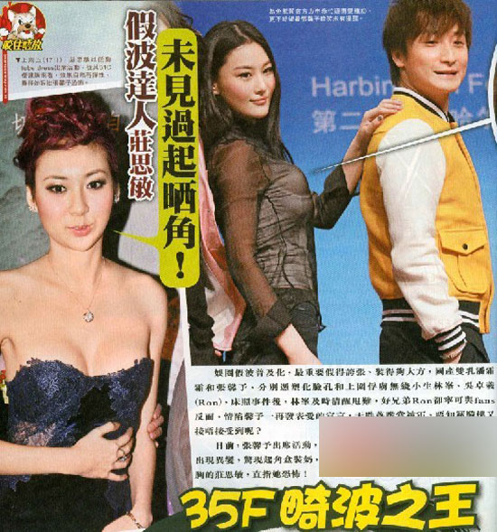 據香港媒體報道,娛樂圈假胸普及化,最重要的是假的夸張,裝的夠大方。國產雙乳潘霜霜和張馨予,分別憑著假臉蛋和上圍虜獲無線下生林峰和吳卓羲,床照事件發生后,林峰及時清醒甩掉舊愛潘霜霜,可好兄弟吳卓羲寧可與粉絲反目,卻仍情陷張馨予并發表愛的宣言。
