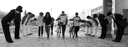 ????“現(xiàn)在孩子一回到家,首先向我們問安。就是走到大街上,見到老師也彎腰行鞠躬禮?!弊蛉丈衔纾鸷邮械?5中學的幾名學生家長告訴記者,“孩子的學習態(tài)度也變化很大,他們感覺如果不好好學習,就是不忠不孝?!?/p> ????3年前,由郊區(qū)學校升格為市直中學的15中,是漯河教育界的“名校”:學生“出口成臟”,經(jīng)常打架斗毆;教師也覺得和其他中學相比,有點灰頭土臉?,F(xiàn)在,該校的文明禮儀教育,成為全市各校的典范。這一巨變,源自“另類”校長王鄭生的“別樣”教育。 ????師生相遇鞠躬問好 ????【目擊】 ????“同學們早上好!”“老師早上好!”昨日上午11時50分,放學鈴聲響起,記者在15中校門口看到:16名老師和學生,分兩排站立,每當有師生途經(jīng)此處時,便不厭其煩地90度鞠躬問好,而受禮后的師生,也會鞠躬還禮。 ????“我們每天都有16名師生,用中國傳統(tǒng)的鞠躬方式,在大門口歡迎師生,早、午、晚風雨無阻?!蓖踵嵣嬖V記者,這一踐行《弟子規(guī)》的禮儀,自他任校長3年多來一直在堅持。不僅是在校門口,就是師生相見,也相互鞠躬問好,老師每天上課前,還要撫摸每名學生以示親昵。 ????“學生多、老師少,這樣輪流鞠躬問好,老師值班的次數(shù)比學生多得多。”該校副校長張鳳坤告訴記者,“很多學生反映,看到老師給他們鞠躬,都有種被尊重的感覺,不自覺地也彎腰還禮。時間一長,這些學生就變得有禮貌、講文明了。” ????師生關系曾很生疏 ????【背景】 ????“3年前,這里還是一個爛攤子?!壁w娟老師告訴記者,15中的生源,大都來自于附近郊區(qū)農(nóng)村小學,多為不被其他市直中學錄取的成績、素質(zhì)較差的孩子。過去學生碰見老師,不是遠遠躲離,就是昂首挺胸視而不見,師生之間的關系很生疏。 ????“學生在外惹了事,一問哪兒的,都說是‘15中的’。”張小偉老師告訴記者,以前很多住校生為打破大門封鎖,就把床單當繩子從窗口扔下,然后攀著床單溜到校外。“出口成臟、打架斗毆的現(xiàn)象經(jīng)常發(fā)生,社會上也流傳很多編排15中的段子。” ????“我2008年來到15中后,發(fā)現(xiàn)這里對學生的管理,沒有什么規(guī)律和方法可循?!痹芜^師范附小、市實驗小學和漯河小學校長的王鄭生,有著32年的從教經(jīng)歷。一到15中任校長,王鄭生就發(fā)現(xiàn)老師只會一味教課,而且傳授得還不到位;學生不尊重老師、在家里跟家長對著干的問題很多。“學生自私、狹隘、偏執(zhí)、不懂禮貌等現(xiàn)象,3年前尤為突出?!蓖踵嵣f。 ????集會呼口號常誦《弟子規(guī)》 ????【措施】 ????“怎么改變?我首先把校訓定格為‘忠孝’:學生好好學習,就是對家長孝順;老師好好教書育人,就是對國家教育事業(yè)的忠誠。”王鄭生說,他又敲定了師生們每天必須多次呼號:“時不我待,再接再厲”、“感謝父母,給予生命”、“感謝老師,賜予慧命”、“感謝學校,優(yōu)美環(huán)境”。 ????“一本《弟子規(guī)》,雖然只有360句1080個字,但它卻提出了在面對113件事情上,如何盡本分、保身心、全人格、推人己、善交友、勉學文?!蓖踵嵣f,“如果堅持把《弟子規(guī)》讀好了,學生肯定會潛移默化地受到影響,學校肯定會因為學生的改變而改變?!蓖踵嵣f,因此,他選定《弟子規(guī)》,作為師生們每天必須反復誦讀的內(nèi)容。 ????“邁出這一步很艱難?!蓖踵嵣f,剛開始師生們都不理解、不支持,于是他首先帶著學校所有中層以上領導,四處去參加中華傳統(tǒng)文化研討會。“進場和離場時,幾百人90度鞠躬歡迎和歡送,讓大家深受感動?!蓖踵嵣f,學習回來后,反對聲消失了。“除每天上學、放學向?qū)W生鞠躬問好外,我們還開展了師生同背《弟子規(guī)》、國旗下釋解《弟子規(guī)》、會議前齊誦《弟子規(guī)》、經(jīng)常舉行中華傳統(tǒng)文化演講會等活動?!备毙iL張瑞華說。 ????王鄭生強制規(guī)定,每班每周必須有一節(jié)閱讀課。他還專門在學校創(chuàng)建了閱覽室,規(guī)定每周都要購買50套新書?!俺龑W生必須經(jīng)常讀新書外,我還要求每個老師每月必須讀幾本書,師生們還要寫讀書筆記,學校定期檢查?!蓖踵嵣f,“我經(jīng)常給學生家長講:只要孩子要書,多少錢都得買?!?/p> ????文明禮儀蔚然成風 ????【效果】 ????“現(xiàn)在,師生們非常注重文明禮儀,遇到誰都主動問好并深施鞠躬禮?!苯處熽惽锵几嬖V記者,學生中原有的隨地吐痰、說臟話粗話、吸煙、打架罵人、亂丟垃圾等等諸多不文明現(xiàn)象不見了,學生知道感恩了,知道孝親尊重他人了,知道愛護校園環(huán)境了,同時也知道努力學習了。 ????“通過經(jīng)典誦讀,改變了我的性格。”去年從15中畢業(yè)的孟聰同學告訴記者,她是獨生女,以前不會處理各種人際關系,在同學中的人緣也不好?!坝捎趯W校經(jīng)常開展經(jīng)典誦讀,特別是每周必須參加在國旗下的演講活動,我的性格逐漸開朗了起來,朋友多了,學習成績也進步了?!闭f起自己的變化,孟聰滔滔不絕,絲毫看不出以前她是個性格內(nèi)向的人。 ????一名學生家長告訴記者,自從學校開展《弟子規(guī)》誦讀活動以來,孩子理解了“父母呼、應勿緩;父母命、行勿懶”和“事諸父、如事父;事諸兄,如事兄”的道理,知道孝敬父母和干家務活了,說話文明了且養(yǎng)成了良好的學習習慣。 ????學生的變化,已改變了外界對15中的印