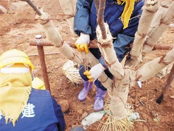 世園會植樹活動近日掀起高潮。記者昨日參加新聞界植樹活動時發現,為了提高樹木的成活率和觀賞性,有關方面動用了大量科技手段,并邀請上海世博會專家前來指導。記者現場觀看了GPS定位植樹,并見識了給樹木貼“創可貼”的奇事。
