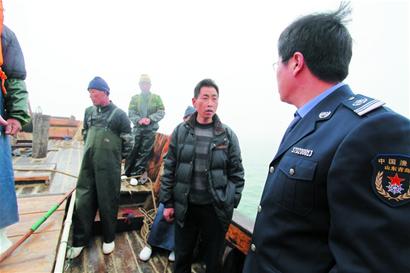 市海洋與漁業(yè)局海政大隊隊長李元忠指著海面上正在作業(yè)的幾艘漁船告訴記者,眼下正值面條魚捕撈季節(jié),這些漁船跟隨面條魚群到處捕撈,有時甚至無視航道航標(biāo),占道捕魚。大型貨船駛來,如果躲避不及,漁船就可能被撞翻,發(fā)生船毀人亡的事故。