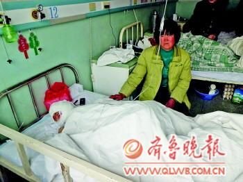 被狼咬傷的劉楠躺在病床上。本報記者李淼攝
