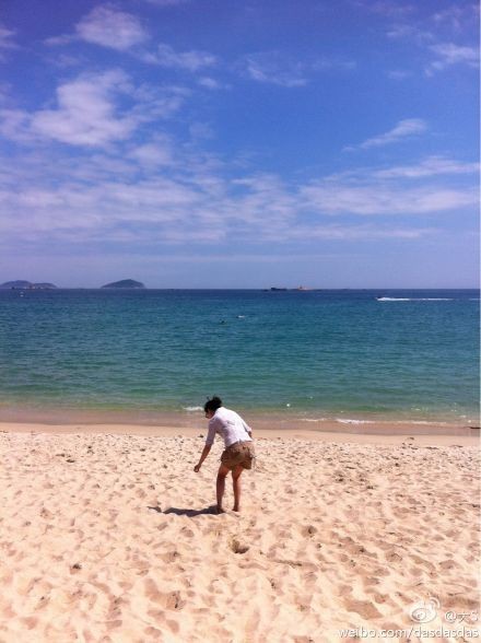 大S微博曬出自己在海邊撿貝殼的背影照