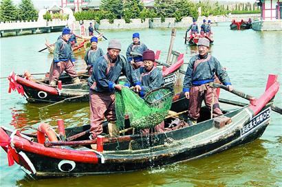 ![]() ????記者昨天獲悉,4月2日至4月4日期間,首屆“漁祖郎君文化節”將在城陽區紅島街道韓家民俗村舉行。屆時,具有千年歷史的漁家祭祖儀式在消失多年后將再次上演,期間,民俗村古帆船隊將再現遠古出海捕撈的盛況,還有精彩的漁家民俗表演。 ????上演漁家祭祖大禮 ????據了解,4月2日上午,首屆“漁祖郎君文化節”將在紅島街道韓家民俗村拉開帷幕。開幕式現場,將舉行歌舞表演,演出內容包括漁家歌謠聯唱,及展現漁民出海捕撈、挖蛤蜊等勞作場景的舞蹈表演。開幕式后,還將舉行搖櫓劃船、撒網捕魚等表演。 ????期間,最惹人關注的是,將在漁祖郎君廟前舉行盛大的祭祀儀式,包括獻祭牲、請神祗等祭祀大禮。當地漁民說,漁家祭祖已有數千年歷史,開始由漁民祭祀漁祖郎君產生,后來發展成漁民出海前的祈福儀式,上世紀六十年代后中斷。此外,節會期間,還將舉辦城陽非遺文化展、攝影展及戲曲專場等。 ????親身體驗漁家勞作 ????昨天上午,當地漁民對游客提前展演了出海捕撈的盛況。在韓家民俗村釣魚臺,10多艘古帆船齊聚岸邊。“拿櫓嘍!”“嗨嗨!”“起錨嘍!”“嗨嗨!”“出海嘍!”……隨著船老大的號子聲響起,船夫們紛紛操起船櫓,10多艘古帆船集體 “出海”。演出現場,漁民們向游客展示了旋網捕魚、挖蛤蜊、拔籠子等漁業技術,讓游客零距離體驗遠古漁民出海捕撈的盛況。 ????據了解,文化節期間,類似表演將每天上演,期間,游客還可乘船體驗出海,親身加入到漁家勞作的行列中,與漁民一起享受豐收的喜悅。 ????再現古代漁家民俗 ????隨著一陣鑼鼓聲響起,媒婆抽著煙袋在前引路,4名壯漢抬著花轎,抬喜酒的、推著裝有嫁妝箱小推車的,韓家民俗村來了一支浩浩蕩蕩的迎親隊伍,這是當地漁民在展示古代迎娶新娘的儀式。 ????隨行人員中,記者看到有幾位身穿古代漁家服裝的漁民,他們穿著一種獨特的鞋子,當地人稱為“鞤”(念bang),是用純豬皮縫制而成。當地漁民說,以前,漁民出海沒有水靴,就用豬皮縫制靴子,這種靴子不僅可以御寒,還可以阻擋海水的進入,是當地遠古留下的習俗,現在已經看不到了。據了解,文化節期間,游客還可以欣賞拋繡球招親的場面。(記者 王濤 通訊員趙偉 攝影報道) ????小知識 漁祖·郎君氏 ????據歷史考證,世界漁業最早源自中國,中國漁業發源最古是在炎黃時代的東夷部落。當時,膠州灣北部首領郎君氏教人們結網造船、出海捕魚,郎君氏被后人尊為“漁祖”。 ????韓家民俗村內古 “郎君港(當地人念jiang)”碼頭遺址是郎君氏中國結網造船、出海捕魚的發祥地。據《易經》易辭下篇記載:“古者郎君氏之王天下也,做結繩而為網罟,東獵于海,亦佃亦漁。”紅島先民為紀念郎君氏,在他居住過的地方修建了“郎君廟”,每年在清明節前舉行盛大的祭祀儀式,以表達對這位漁業祖神的崇敬,感恩大海賜予的福祉,并祈求出海打魚海不揚波、魚蝦滿艙。 |