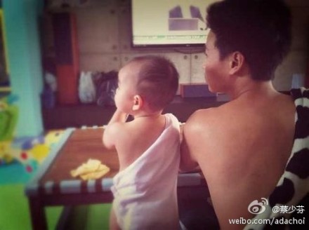 近日,蔡少芬又大秀家中的倆寶,一個是老公張晉,一個是女兒楚兒。蔡少芬微博上曝光了兩個人的裸背照,父女倆超有模特范。畫面非常有喜感,網友表示真是“歡樂的一家”。
