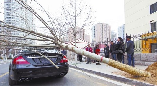 被砸的奔馳是輛新車(chē)。 ????行道樹(shù)歪倒砸中大奔 ????30日下午,市民田先生反映,增城路與澳門(mén)路交會(huì)處附近一輛豪華奔馳被行道樹(shù)“砸傷”,交警已經(jīng)到現(xiàn)場(chǎng)取證。記者趕到時(shí)發(fā)現(xiàn),被砸的是一輛CLS63AMG型奔馳轎車(chē)。 ????奔馳車(chē)主告訴記者,事發(fā)時(shí)他正從北向南行駛在增城路上,行至這棵大樹(shù)跟前時(shí),他發(fā)現(xiàn)大樹(shù)有要倒的趨勢(shì),“我當(dāng)時(shí)就想加速躲過(guò)去,沒(méi)想到還是被砸了。”車(chē)主說(shuō),自己駕駛的這輛轎車(chē)是今年花了200多萬(wàn)元新買(mǎi)的,車(chē)內(nèi)所有部件都是從國(guó)外進(jìn)口,開(kāi)的時(shí)候都很小心,沒(méi)想到卻被行道樹(shù)砸了。“你看看,天線都給砸斷了。”記者發(fā)現(xiàn),車(chē)主所指的頂棚處的黑色尖角式的天線被砸落在一旁,里邊綠色的線路板也已經(jīng)脫落,不僅如此,車(chē)頂邊緣已經(jīng)出現(xiàn)一個(gè)明顯的凹痕,后風(fēng)擋玻璃也有明顯的劃痕。 ????樹(shù)倒砸車(chē)不止一起 ????據(jù)附近的居民介紹,被新栽的行道樹(shù)砸傷的車(chē)不止這一輛,不久前澳門(mén)路就剛剛發(fā)生過(guò)一起類(lèi)似事件。記者在現(xiàn)場(chǎng)采訪時(shí),兩名綠化公司的工作人員來(lái)到現(xiàn)場(chǎng)處理此事,他們的工作服上標(biāo)有“新藝林”的字樣。兩名工作人員表示,目前公司領(lǐng)導(dǎo)在外地,他們要回去向領(lǐng)導(dǎo)匯報(bào)后才能給車(chē)主答復(fù)。由于倒伏的大樹(shù)樹(shù)冠遮蓋了整個(gè)馬路造成路堵,附近居民拿來(lái)剪刀將多余的樹(shù)枝剪短,一些小型車(chē)輛才能依次通過(guò)。交警也再次來(lái)到現(xiàn)場(chǎng)協(xié)調(diào)交通。下午5時(shí)許,趕來(lái)鑒定的保險(xiǎn)公司工作人員告訴記者,這輛奔馳是一輛豪華跑車(chē),究竟是更換頂棚還是維修需要和車(chē)主協(xié)商,具體需要的數(shù)額他們也不好估算,但據(jù)以前的經(jīng)驗(yàn),這種情況至少需要兩到三萬(wàn)元。截至下午6時(shí)許,現(xiàn)場(chǎng)大樹(shù)還沒(méi)有被搬走。 ????樹(shù)栽得太淺是事故主因 ????“好在是砸了車(chē),如果砸了人,誰(shuí)能負(fù)起這個(gè)責(zé)任!”市民王先生告訴記者,雖然30日風(fēng)特別大,但這并不是主因,大樹(shù)突然歪倒的主要原因是栽得太淺。 ????記者看到,倒伏的梧桐底座高度在50厘米~60厘米,淺淺地坐在樹(shù)坑里,與下面的土壤沒(méi)有完全交融,很容易倒伏。“28日栽上的,30日出事了才想著來(lái)加固。”附近居民孫先生告訴記者,這不是倒伏的第一棵樹(shù),事發(fā)現(xiàn)場(chǎng)北側(cè)不到20米就有一棵行道樹(shù)歪倒了。記者也注意到,在事發(fā)現(xiàn)場(chǎng)向南約400米處,另一棵行道樹(shù)更是歪倒在柵欄上。過(guò)了不久,新藝林公司的員工趕到現(xiàn)場(chǎng)開(kāi)始對(duì)北側(cè)大樹(shù)進(jìn)行加固。 ????“這么短的一段路上,出現(xiàn)了三棵倒伏的行道樹(shù),這么栽樹(shù)不是糊弄人嗎?”王先生告訴記者,附近正在大規(guī)模的補(bǔ)栽行道樹(shù),綠化本是一件好事,可是接連發(fā)生的行道樹(shù)倒伏讓居民很擔(dān)心。不少市民表示,希望相關(guān)部門(mén)對(duì)這些行道樹(shù)采取相應(yīng)措施,不要栽上就完了,要保證質(zhì)量。 ????可向樹(shù)木所有人索賠 ????當(dāng)天晚上7時(shí)許,記者致電青島新藝林市政園林公司,但是24小時(shí)服務(wù)熱線和網(wǎng)頁(yè)登記電話均沒(méi)有人接聽(tīng)。記者隨后又致電12345政務(wù)服務(wù)熱線反映此事,工作人員表示,他們將盡快與相關(guān)部門(mén)聯(lián)系,督促他們盡快對(duì)剩余大樹(shù)進(jìn)行加固。 ????就此,山東元鼎律師事務(wù)所單正國(guó)律師表示,因林木折斷造成的損失,受害者可以直接向林木的所有人或是管理者進(jìn)行索賠,但一些不可抗因素(比如臺(tái)風(fēng))除外。車(chē)主在購(gòu)買(mǎi)了保險(xiǎn)的情況下,可以直接向保險(xiǎn)公司索賠,再由保險(xiǎn)公司行使財(cái)產(chǎn)追償權(quán),向林木的所有人或是管理人進(jìn)行索賠。 |