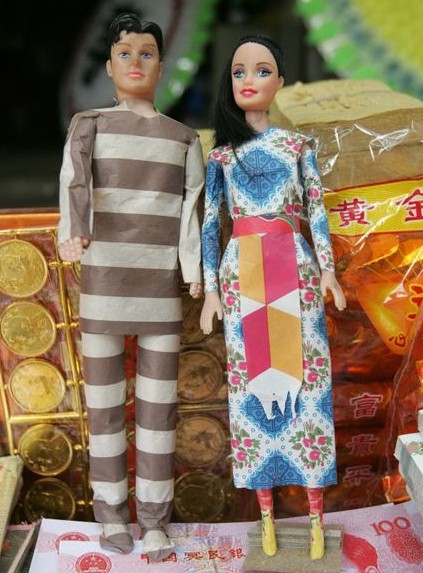 ![]() 紙糊“帥哥”、“美女”(資料圖) ????又到一年清明時,祭祀品市場到了一年中最紅火的時候。記者昨日走訪石橋鋪、四公里等售賣祭祀用品市場發(fā)現(xiàn),今年祭品開始出新花樣,蘋果筆記本、諾基亞手機等高科技產(chǎn)品等都粉末登場。 ????店主 二奶小三都能做祭品 ????通往南岸四公里江南殯儀館外的道路上,賣祭品的店鋪一字排開。一家店鋪內(nèi),一棟紙扎的四層別墅分外顯眼,中間赫然寫著九泉別墅。老板張先生介紹,這是一幢現(xiàn)代“別墅”,家用設(shè)施、電器設(shè)備一應(yīng)俱全,一樓大廳門口站著穿制服的保鏢。“一套別墅,小的100元,大的200元。”張先生說。 ????在另一家祭品店里,記者看到不少豪汽,有奔馳、寶馬等。老板牛女士介紹,轎車費工,售價也高,一臺寶馬20多元。這時,店里來了一名提貨顧客,他表示:“老頭生前沒有坐上轎車,到那邊讓他享享福,一輛寶馬不過20元,不算貴。” ????“只要想得到,我這里就能做得出。”牛女士表示,店里不但可以做別墅、名車,就是網(wǎng)上說的二奶、小三都能訂做,“大的20元一個,小的15元一個。” ????市民 還是覺得紙錢實在 ????石橋鋪殯儀館外一個鋪位前,記者看到,空調(diào)、雙開門冰箱、熱水器等祭品一應(yīng)俱全,另外還有不少數(shù)碼產(chǎn)品,如帶蘋果商標(biāo)標(biāo)志的筆記本電腦,諾基亞N9手機等……記者粗略算了一下,一條街上有10余家攤位賣祭品高科技產(chǎn)品。一商鋪老板告訴記者,iphone手機和ipad平板電腦,售價20元。 ????“上面的生活發(fā)生這么大的變化,下面的人也該共同進步呀。”購買祭品的市民區(qū)小姐笑稱,“也要讓他們感受一下新技術(shù)帶來的享受。” ????并不是所有市民都買高科技的賬。“其實還是買紙錢的人更多,這些時髦東西,只是偶爾能賣出去幾個。”老板說,大部分人還是覺得紙錢來得實在。 ????來此祭祀的王先生就表示說:“先人去世時還沒有電子產(chǎn)品,用不來買去不等于白搭、故意氣先人嗎?” ????祭奠 菊花文明祭奠是一抹亮色 ????記者走訪發(fā)現(xiàn),雖然傳統(tǒng)紙質(zhì)祭品依然占據(jù)大部分?jǐn)偽唬總€店鋪前擺放的菊花還是讓人看到一股文明之風(fēng)。 ????石橋鋪殯儀館外,幾乎每個祭品攤前,都擺放了白色和黃色菊花售賣,每支2~3元不等。一店鋪老板告訴記者,這兩天他已賣出不下百余束菊花,特別是二三十歲的年輕人,更喜歡用鮮花進行祭奠先人。 ????購買菊花的孫先生說,傳統(tǒng)紙質(zhì)祭品污染環(huán)境,燃燒過程中也存在火災(zāi)隱患,買束菊花祭奠,低碳經(jīng)濟,心意也到了,兩全齊美。 ????社會問題專家:祭奠方式應(yīng)高雅莊重 ????南岸區(qū)政協(xié)委員、社會問題專家鄧藝接受記者采訪時表示,清明節(jié)本意是尊先賢、孝敬父母等,是中華民族固有的文化傳統(tǒng),本應(yīng)尊重歷史和傳統(tǒng),但目前社會上的祭品有低俗化傾向。 ????鄧藝說,有些人借口為讓親人感受社會進步,顯得牽強。“親人在世時無暇多盡孝心,天人相隔后,花費再多的錢財,對死者也毫無意義,掩藏背后的,實際是拜金主義、攀比之風(fēng)。造別墅、造名車后又掀起了紙糊蘋果成祭品的潮流,這些都折射出社會的病態(tài)。”鄧藝說。鄧藝表示,清明時節(jié)的祭奠方式上,更多應(yīng)是情感和心理的表達(dá),應(yīng)是高雅、莊重、神圣的。 |