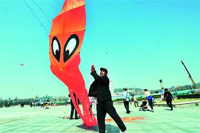身長12米的大章魚、會轉眼珠的紅金魚、張著血盆大口的鯊魚,還有八腿橫行的威武螃蟹……昨天上午,數百名市民來到匯泉廣場參與由青島海底世界舉辦的 “鯊魚飛上天”風箏比賽,上百只“海洋生物”風箏翱翔天空,一時間,廣場上空仿佛成了魚蝦蟹們的“海底世界”。 在所有“上天”的海洋生物中,一個超大的白色大章魚最為“拉風”,它隨風舞動著修長的身體,顯得格外淡定飄逸,它的主人相錫杰告訴記者,這個大章魚身長12米,全身沒有任何骨架支撐,是地地道道的軟體動物,在它的頭部和身上布滿了風道,因此能夠飄逸“飛天”。 大多數人都是帶著一個風箏來放,59歲的風箏愛好者姜建國卻一氣兒帶來了5個,而且都是他親手制作的——身長10米的紅章魚、八腿的螃蟹,還有鯉魚、金龍魚、大鯨魚。在姜建國嫻熟的操縱下,5條大魚輪番上天,個個搶眼。(記者 于小陽 攝影報道) |
