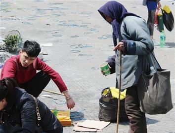 職業(yè)哭喪乞丐清明出動 職業(yè)哭喪乞丐清明出動 又到清明時節(jié),那些專挑殯儀館下手的 “哭喪乞丐”再次組團(tuán)來青“淘金”,他們站在燒紙祭奠的人群中伸手乞討,口中念念有詞,“得手”前遲遲不肯離去,讓祭奠的市民不堪其擾,也讓殯儀館的工作人員充滿無奈。昨天記者來到“哭喪乞丐”身邊,得知他們也是朝九晚五乘坐公交車“上下班”,清明前后最高收入千元以上。 清明祭奠遭遇“哭喪丐” 抱著丈夫的骨灰盒,53歲的劉女士有一肚子的話,想要跟去世一年的丈夫好好念叨念叨,可就在她流下兩行熱淚,心中悲痛欲絕時,一只黑乎乎的手掌,拿著破鐵罐伸到了她的面前,衣衫襤褸滿頭白發(fā)的老人臉上帶著卑微的笑容看著她,嘴里念叨著“子孫公侯萬代,全家都發(fā)大財”,劉女士莫名其妙愣在當(dāng)場,這名老人在她面前站了三四分鐘,直到她的兒子掏出1元錢放進(jìn)鐵罐,這名老人才轉(zhuǎn)身離去。短短10多分鐘內(nèi),正在祭奠的劉女士先后被六七名行乞老人 “騷擾”。“你應(yīng)付走一撥,馬上就會又來一撥,有些人甚至跪在你面前不肯走。”記者采訪時,深受其害的市民紛紛表示,這些乞丐就不該被放進(jìn)殯儀館內(nèi)。 每年必到工作人員無奈 “我在殯儀館內(nèi)工作了10多年,這些老人幾乎是每年必到,我們曾試過很多辦法,想把這些行乞老人請出去,但這些老人都七八十歲了,連句重話都不能說他們,更別說阻攔他們了。”殯儀館工作人員稱,這些老人大部分來自臨沂周邊地區(qū),趁著農(nóng)閑跟著兒女組團(tuán)來青,兒女們忙著拾荒撿垃圾,他們則向市民行乞。他們一般在清明前一周就已經(jīng)到位,過了清明節(jié)第二天就全部消失不見。其中很多人都是連續(xù)來過七八年的“老面孔”了。他們曾經(jīng)聯(lián)系過臨沂當(dāng)?shù)氐拿裾块T,曾有當(dāng)?shù)毓ぷ魅藛T來勸說老人們回家,但老人行乞收入不少,勸說的效果并不理想。 |