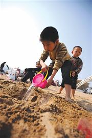 青島氣溫達22℃再創新高 昨天青島市市區最高氣溫達到22.1℃,創近日新高。島城各主要景區點出現了游客小“井噴”,海濱風景區特別是第一海水浴場至棧橋一段,游人如織。放風箏、玩游戲、曬日光、坐游艇,昨日的第一海水浴場分外熱鬧,人山人海的旅游場面在今年春節后首次出現。 仿佛從天上掉下來一樣 “今天浴場的人太多了,仿佛一下子從天上掉下來的一樣,前兩天哪有今天這么多,和夏天一樣了。 ”昨日下午1時許,當記者剛來到第一海水浴場西側采訪時,正在浴場鍛煉的李先生告訴記者。 記者注意到,從西側石階上望去,整個第一海水浴場“黑壓壓”一片,游客們在沙灘上盡情享受著日光浴帶來的歡樂。而水上摩托艇、皮劃艇、水上自行車等娛樂項目也已經展開。 “還是今天生意好,半天就有近百游客。 ”一名負責水上娛樂設施的工作人員告訴記者,假期第一天的天氣陰沉且下起了小雨,第一海水浴場人數并不多,而假期第二天則是大風不斷,不少游客被吹得不敢到海邊,人數也不是很多,但4日這一天恰好風和日麗,浴場的游客一下子才“鼓”了。 記者注意到,大部分游客都是全家出動,有的干脆在沙灘上支起來一個帳篷,一家人鉆到帳篷里面享受海邊沙灘美景。 在沙灘上,記者遇到了從濱州來青島的黃先生一家人。黃先生告訴記者,他們一家人早就想到青島游玩,這次清明小長假便將旅游目的地直接定在青島,這次旅游不僅帶上了自己8歲的兒子,還帶上了自己的父母。 “來了之后才發現衣服帶少了,白天有點冷,尤其是前兩天,凍得都不敢出門。 ”黃先生介紹,他們一家人在棧橋附近找了一家旅館住下了,本來計劃第一天就要到浴場玩,不料溫度太低,只好在棧橋逛了逛便將旅游項目轉到室內,在海底世界看了看。 “就怕第三天天氣還不好,這樣我們的小長假感覺有點浪費,好在氣溫一下子升上去了,這才帶著孩子和老人來沙灘上盡情玩。 ” 沙灘上舉辦班級聚會 在浴場沙灘中間位置,記者發現有不少游客圍了一個大圈,記者湊上去一看,原來是三十多名年輕人在聚會。只見他們圍成一個大圈,分別推薦不同的人到中間做游戲,輸了的一方則表演節目。記者一問,原來是青島某高校大學生的班級聚會。 學生小李告訴記者,他們早就計劃在小長假里到沙灘上舉辦班級活動,大家一起做游戲增加同學間的感情,但不料因為天氣不好,一直推到了第三天,“在沙灘上聚會的感覺太棒了,大家一起出來,一起玩,彼此間相互更加了解。 ”雖然是學生聚會,但周圍也吸引了不少的游客觀看,很快學生們周圍便是里三層外三層。 下午2時許,氣溫越來越高,沙灘上的太陽也開始有點灼人,女性游客撐起傘防曬,而一些沒帶傘具的游客則用衣服把自己包裹起來。雖然沙灘上氣溫不低,但下海游泳的卻很少見,“現在水溫還是太低了,有6℃就不錯了,下去太冷。”一名摩托艇駕駛員告訴記者。 |