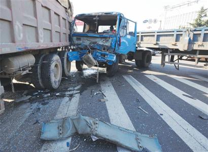 青島瑞昌路四車連撞雪鐵龍報廢 車禍堵路三小時 昨日下午2時40分許,一輛雪鐵龍轎車剛剛從萬安路方向拐出準備駛上瑞昌路時,不慎與一輛半掛車頂在了一起。半掛車司機為了避免頂翻轎車猛打方向,結果不慎與另一輛迎面駛來的自卸車相撞,在巨大的沖擊力下,兩車的“頸椎”不幸當場雙雙折斷。而自卸車由于剎車不及,又撞上了路邊停著的另外一輛車。記者現場了解到,這起車禍造成環灣大道瑞昌路出口附近堵路三小時。 報料 下橋口四車連撞 “在瑞昌路這里有四輛車撞在一起了,三輛大車把中間一輛雪鐵龍轎車都給擠廢了!”接到市民李女士的報料電話后,記者迅速趕往瑞昌路萬安路路口看見,一輛黑色的雪鐵龍轎車停在路中間,左側車頭在事故中被撞掉一大塊,前擋風玻璃也碎成了一地“鉆石”,后方一輛自卸車和一輛半掛車撞在一起。記者看到,半掛車的車頭與車身竟然呈垂直狀扭轉了90度,邊上一輛自卸車打著雙閃停在路邊,左側車頭陷進去了約半米的距離,而駕駛室也被撞得變形了。“這輛自卸車還撞了一輛車,那輛車傷得不重,司機過了一會趕到現場,在交警調查完以后開走了。 ”目擊者劉先生對記者說。 現場 兩車撞成“歪脖子” 車禍發生在下午2時40分許,當時劉先生剛從附近的加油站駛出,突然車前方傳來了“轟隆”一聲巨響,一輛準備駛上環灣大道的半掛車與一輛從左側拐出的雪鐵龍撞在了一起,將其前發動機蓋左側削掉了一大半。此時,一輛自卸車正好從半掛車的對面行駛過來,失去方向的半掛車車頭又和自卸車撞在了一起,當場頂在了自卸車車頭和拖斗之間。由于巨大的沖擊力,半掛車的車頭和拖斗之間如骨折一般,“咔嚓”一聲拐成了90度角停在路邊。劉先生開車離開加油站時,發現路邊停著的一輛車被自卸車頂在了尾部。 說法 避轎車急打方向 “我要往環灣大道那邊走來,誰知道開到這里撞上了!”半掛車司機告訴記者,他是沿著瑞昌路向環灣大道一側行駛,當他行駛到瑞昌路和萬安路路口時,一輛黑色轎車左拐出來,眼看兩輛車就要撞到一起,他猛打了一把方向盤躲避,結果還是撞在了一起。 “如果我不打方向盤,我這車這么沉,估計要當場把它(雪鐵龍)頂翻了。”半掛車司機告訴記者,半掛車車頭蹭到了轎車的車頭左側后繼續向左偏離,而此時不巧有一輛自卸車沿著瑞昌路向反方向駛來,半掛車一下頂在了自卸車車頭和車斗之間。由于巨大的撞擊,半掛車的車頭扭成了90度后與車身垂直,而自卸車的“關節”也受了重傷。 影響 車禍堵路三小時 昨日下午3時許,在警方結束調查后,拖車趕到現場將雪鐵龍轎車拖走。而由于20余米長的半掛車和10余米長的自卸車都在事故中失去動力而無法駛離。 “半掛車的車頭撞毀了,車頭必須被拖車拖走,還需要調個車頭過來才能將后面的拖斗拖走。”一名交警告訴記者。而記者注意到,自卸車的車頭和車斗中間,機油漏出了20多米長,只要司機坐在車內輕輕發動油門,只見連接軸在不斷轉動,而無法驅動車輪。直至下午5時50分許,維修人員一直在修理兩個“大家伙”,而此時的環灣大道瑞昌路下橋口,至少排起了半公里長的車龍。記者了解到,在事故中,雪鐵龍車、自卸車、半掛車的司機都有輕微的擦傷,并無大礙。 |