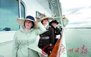 一些女乘客以“泰坦尼克號”所處時代的服裝風格來打扮自己 美國密西根大學安娜堡分校冰川學家杰里米·巴希斯指出: “如果‘泰坦尼克’號沿著與當年相同的航線行駛,將遭遇更多冰山。” 羅溫斯坦指出,由于海洋內的冰分布情況始終處于變化之中,科學家無法預測冰山的規模以及將在何處形成。也就是說,科學家并不清楚“泰坦尼克”號在1912年或者今天進行航行時遭遇多少冰山。 羅溫斯坦說:“為了防止出現‘泰坦尼克’號那樣的災難,人們也采取了很多措施,例如增加客輪的救生艇數量。面對氣候變化,我們也應采取更多新措施加以應對。 |