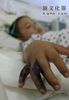 資料圖:2004年在吉林敦化侵華日軍遺留毒氣彈泄漏事件中受傷的兒童