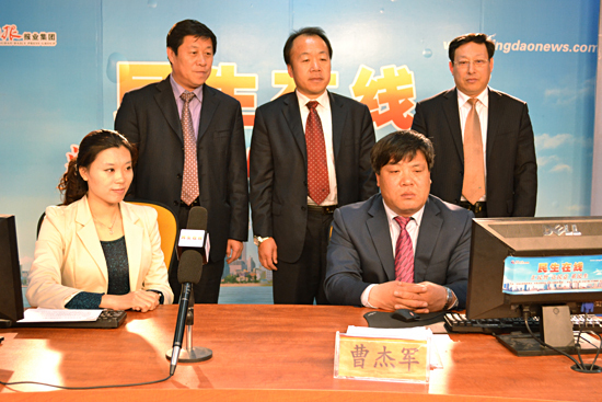萊西市副市長曹杰軍(一排右一)與網民在線交流 (周琦 攝)