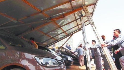 深圳路一停車場內工作人員用梯子保護被壓的車輛。 ????25日,受大風天氣的影響,島城至少上百輛汽車遭受損失,各大保險公司也忙著奔波于事故現場。對此業內人員提醒。車輛遭遇意外損失時,應注意保護現場,及時告知交警與保險公司,待責任劃定后再尋求賠償。 ????腳手架側翻車輛中招 ????25日上午,遼陽東路16號附近一個正在裝修的門頭,腳手架側翻,路邊停著的七八輛汽車都被砸傷?!?點半來上班 ????裝修門頭的負責人董先生表示,待車子開到維修廠定損以后,會根據與施工方的協議以及定損價格等相關事項賠償車主的損失。 ????廣告牌壓頂轎車變形 ????25日上午10時許,嶗山區深圳路222號天泰金融廣場附近停車場一側的巨型廣告牌突然倒塌,十幾輛汽車被壓在下面,有五六輛汽車已經變形。 ????事后幾位車主已經報警并通知了保險公司,經詢問得知,所受損失應由廣告牌責任方承擔,但不知道廣告牌究竟該歸誰管。記者看到附近廣告牌上寫有“天泰·金融廣場”字樣以及樓盤的招商信息。 ????廣告牌吻車屁股 ????車主傅先生想著風大,沒敢將車停在路燈下。沒想到一個緊挨大樓擋風玻璃的廣告牌前傾,砸在了車尾處。 ????隨后保險公司工作人員與國信體育場相關負責人先后趕到予以調查取證。據了解,如若走車險理賠程序,保險公司只負責對車損定額的70%予以賠償,剩余的30%不在理賠范圍?!拔覜Q定讓保險公司賠付70%,剩余的30%由國信體育場這邊賠償,這樣我就不用承擔損失了?!睅捉浗簧婧螅迪壬嬖V記者。 ????有沒有人受傷理賠流程不一樣 ????受25日大風影響,島城至少有上百輛汽車被物體砸壞或刮擦。發生以上類似事故,車主該如何處理?中國人民財產保險股份有限公司青島分公司的李先生說,駕駛員應先保留現場,待相關人員前來取證調查后,方可將車子開走予以維修。 ????李先生說,在無人受傷而車輛意外遭遇外物損傷時,應首先明確責任方,調查后由對方賠付車主的意外損失。如若找不到相關責任人,則可走車險理賠程序,待車輛定損后,保險公司一般會支付70%或80%的損失。很多車主會選擇讓保險公司賠付大部分維修費,剩余的差額與事故責任方協商進行賠付。 ????如若車損事故牽扯到人員傷亡,則要復雜得多,還需根據交警的事故責任判定書進行具體的賠償事宜。 |