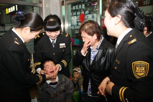 ![]() ????青島新聞網5月7日訊 因為調皮與母親失散,六歲的謝林潤險些被人販子帶上前往威海的客車,幸虧要找媽媽的哭喊聲引起了交運集團青島長途站工作人員的注意,將其解救后不到20分鐘就送回到了母親身邊。 ????混充阿姨拐騙孩子 被問名字“卡殼” ????5月4日上午10時許,一名中年婦女抱著一名哭鬧的兒童走進了青島長途汽車站的候車廳。孩子的哭聲起初并沒有引起周圍人群的注意,只是以為孩子調皮不聽媽媽的話,而中年婦女也不斷從自己的紅色綢包中拿出零食和玩具塞給孩子。“媽媽,我要找媽媽!”當工作人員陳美佳走過兩人身邊時,卻聽到孩子不斷哭喊著要找媽媽,而中年女子用著很不標準的普通話回應說:“媽媽在威海,阿姨帶你去找媽媽!” ????這可引起了陳美佳的注意,孩子身邊的女人是誰?于是她立刻主動走上前去詢問有什么可以幫忙的,而陳美佳的主動詢問讓中年女子有些驚慌,不斷重復著說她是孩子的阿姨,要帶孩子去威海看媽媽,然而當美佳問到孩子叫什么時,這名女子開始“卡殼”,一會說叫帥帥,一會說叫王東,并表示自己馬上要上車了,說完拉起孩子就朝檢票口走去。 ????塞零食哄騙孩子 被察覺后偷偷溜走 ????然而中年婦女的一個舉動又引起了陳美佳的注意,孩子不斷在哭喊,可是這名婦女卻不斷往孩子嘴里塞零食,還用手捂住孩子的嘴不讓其將食物吐出來。看到這種情況,陳美佳立刻悄悄告知了檢票人員不要為這名婦女檢票,然后自己再次走上前去迅速拉住孩子的手,告訴中年婦女因為車輛故障暫時無法發車,可以去特需旅客休息室休息等候。 ????也許是看到了不少旅客都上車了而自己卻不能上車,這名中年婦女有所覺察,便跟陳美佳說自己要再去買點東西,幫自己照顧一下孩子,然后迅速離開了候車廳。 ????失散兩個多小時終見面 ????陳美佳將孩子帶到了特需旅客候車室后迅速將情況告訴了駐站民警,經過長時間的安撫,孩子的情緒才穩定下來不再哭鬧。經過詢問,原來孩子名叫謝林潤,今年六歲,是跟著自己的媽媽來到車站準備回自己的老家無棣的,可是在媽媽買票的時候,自己跑到了車站外花壇玩耍,當再回到售票廳時候,媽媽已經不見了,于是他跑到車站外尋找卻沒有找到,于是蹲在地上開始大哭。而拉著自己坐車的那名中年婦女當時告訴自己看到媽媽去了威海,可以帶他去威海找媽媽,他才跟一起著走的,那名婦女還叮囑說,要是別人問就說她是自己的阿姨。 ????在了解事情的真相后,車站的服務臺立刻開始不間斷廣播,希望小潤潤的母親能夠聽到,車站的工作人員還將小潤潤帶到了監控中心,讓其在監控畫面中找尋自己的母親。找了十多分鐘,小潤潤終于在車站迎客廳正對馬路的攝像頭拍攝的畫面中看到了自己的母親,工作人員立刻趕往迎客廳找到了已經情緒激動、逢人便問有沒有看到自己孩子劉女士,失散兩個多小時的母子二人也終于相見了。激動不已的媽媽一把摟住了自己的兒子,失聲痛哭了起來,當得知兒子差點被拐走時,劉女士嘴里不停地感謝著車站的工作人員,“謝謝你們,多虧了你們幫忙,要不我真的不知道該怎么辦了。”(青島新聞網記者 孫璐璐 通訊員 李男) |